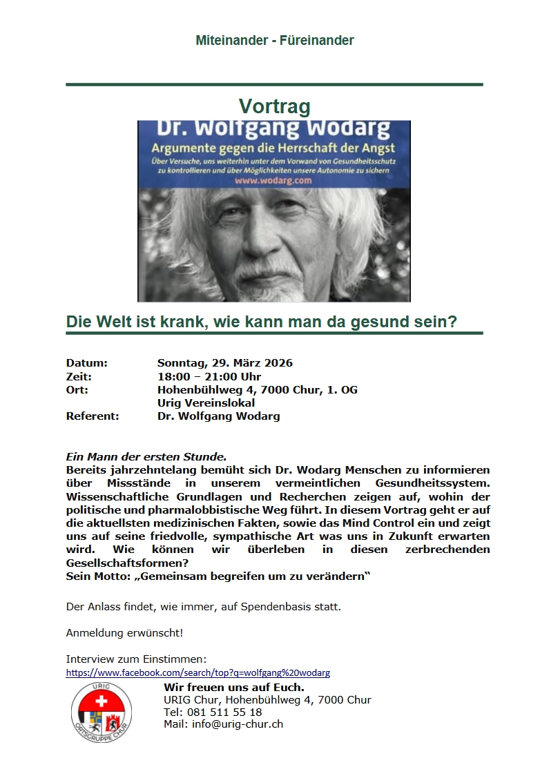 Dr. Wolfgang Wodarg schildert auf seine lebendige Art den momentanen Zeitgeist unserer Obrigkeit und bietet Möglichkeiten zur eigenen Veränderung.