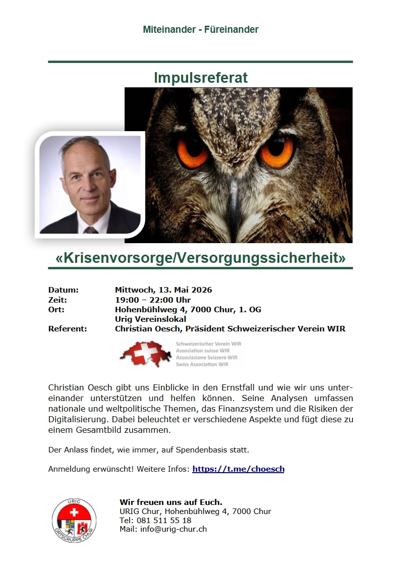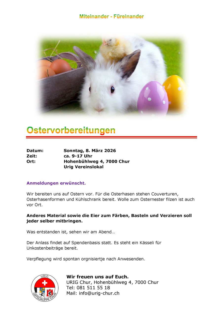 Urig Chur organisiert regelmässig spannende Veranstaltungen. Falls auch Du etwas anbieten kannst, melde Dich gerne bei uns.